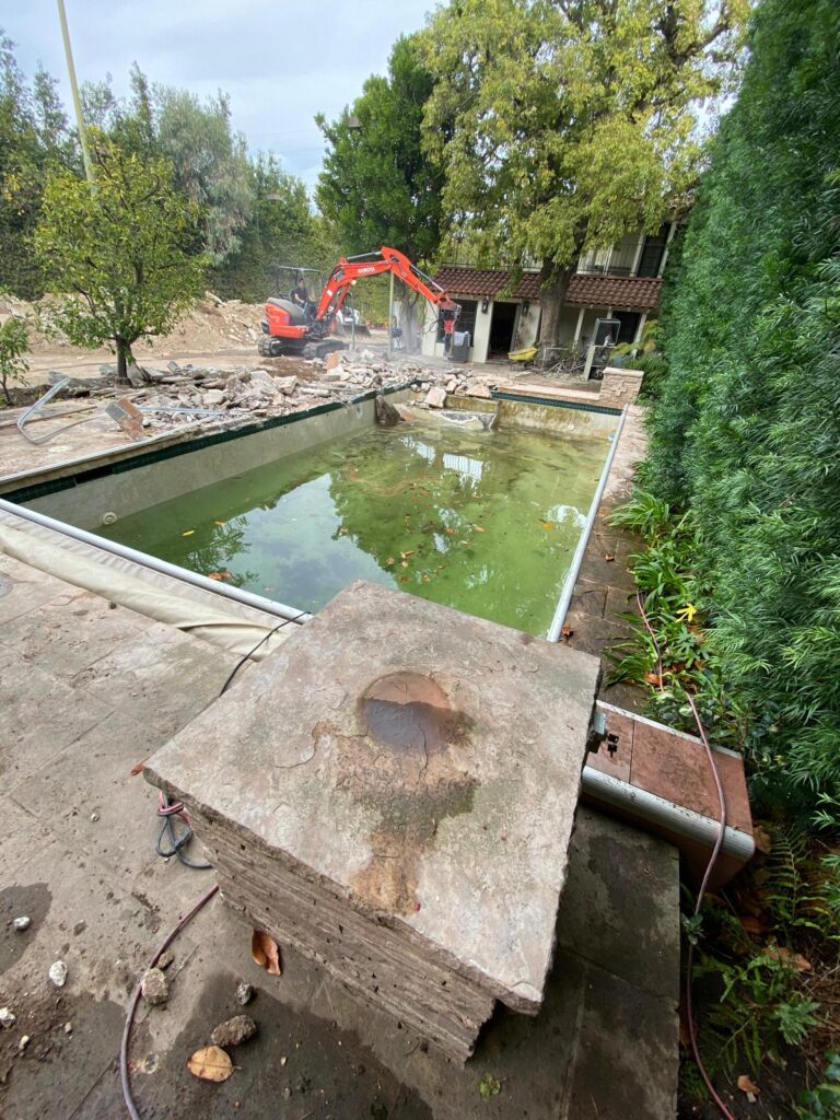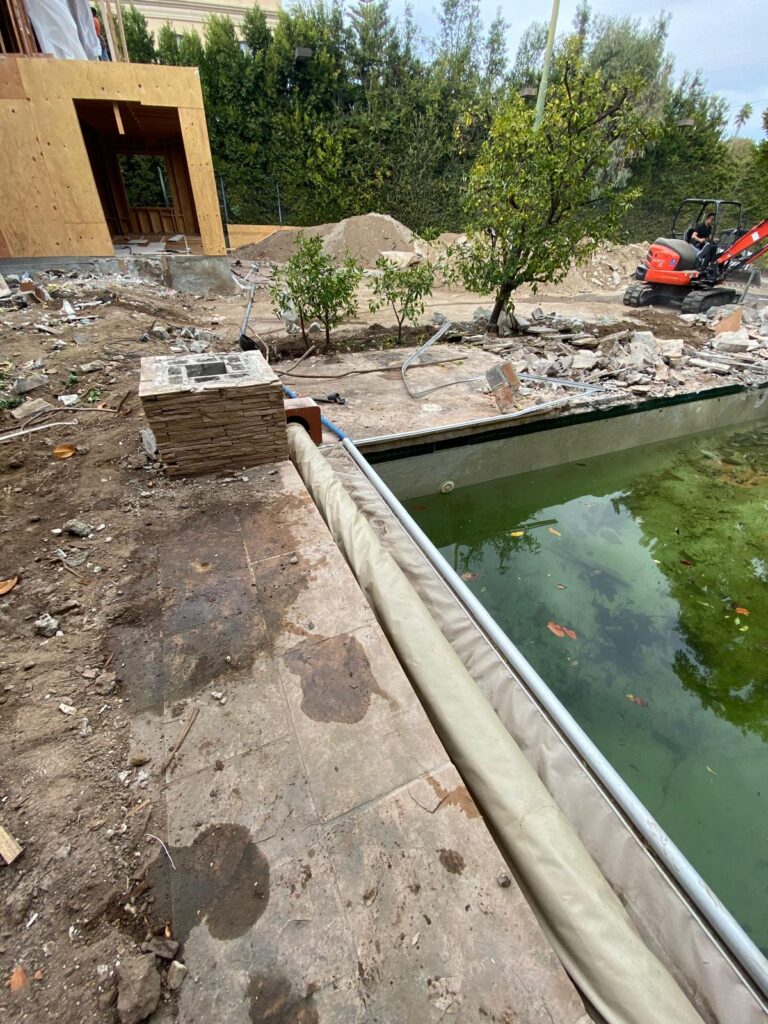 Golden Gate General Construction Inc. masterfully transformed this project into a breathtaking infinity zero-edge pool. The construction involved seven caissons in total: six for the pool itself and one dedicated to the raised 360-degree infinity spa. One of the unique challenges of this project was navigating the hauling restrictions in Trousdale Estates, which meant that concrete had to be transported in smaller loads of five yards at a time. Despite these challenges, our team’s dedication and expertise resulted in a stunning, elegant pool and spa that perfectly complement the luxurious surroundings.