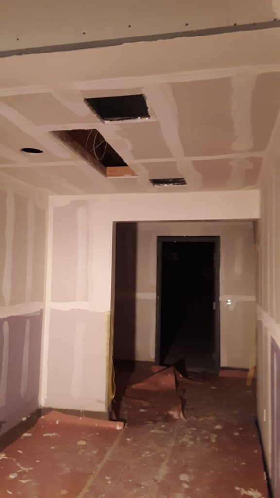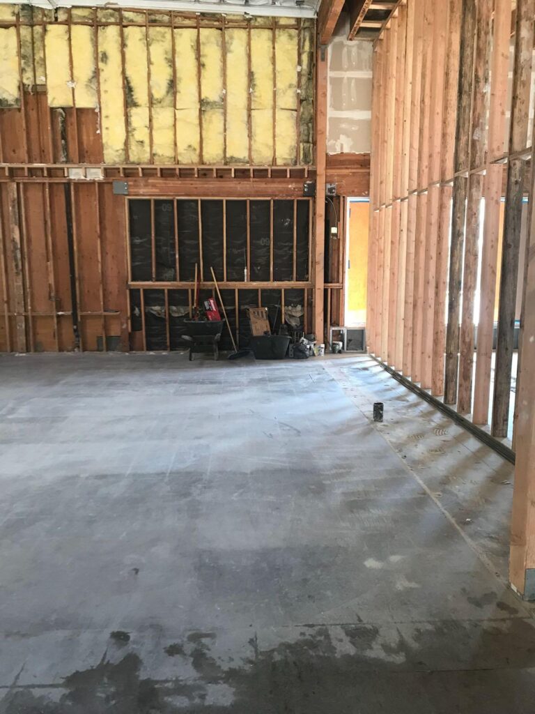 We began by subdividing the original commercial space into three separate storefronts. This included upgrading the main electrical service to an 800-amp panel, removing the existing asphalt in the parking lot, and replacing it with new concrete for durability and ADA compliance. We also built new partition walls to define the retail units and prepare them for future tenants.