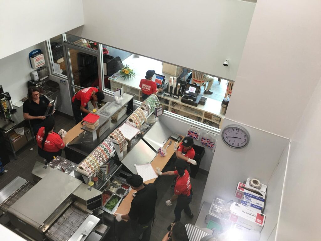 Once the space was ready, we moved into the full build-out for Earl of Sandwich. The scope included complete interior demolition, MEP upgrades, ADA-compliant restrooms, custom finishes per franchise specifications, kitchen equipment installation, and a new exterior façade. We also constructed a second floor to serve as dedicated office and storage space, optimizing functionality within the compact footprint.