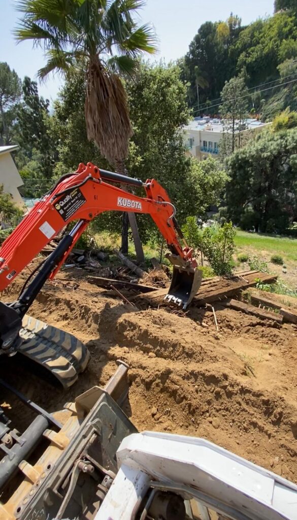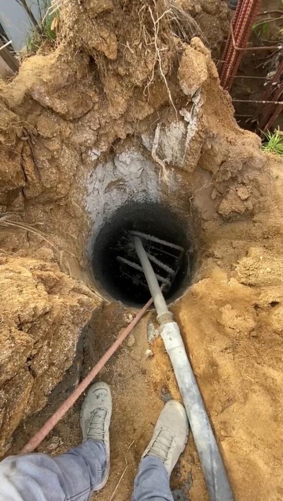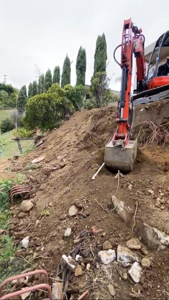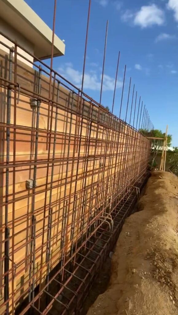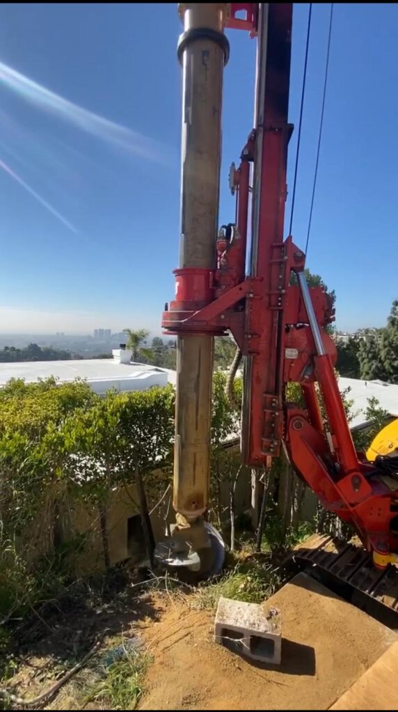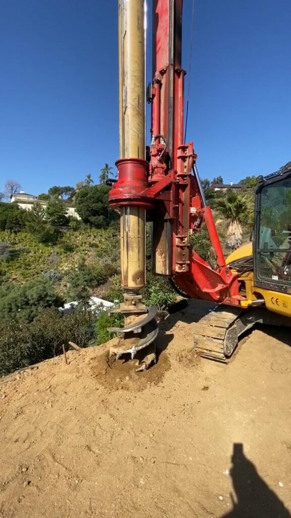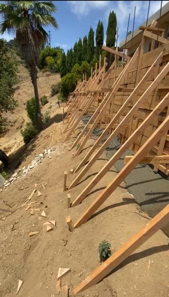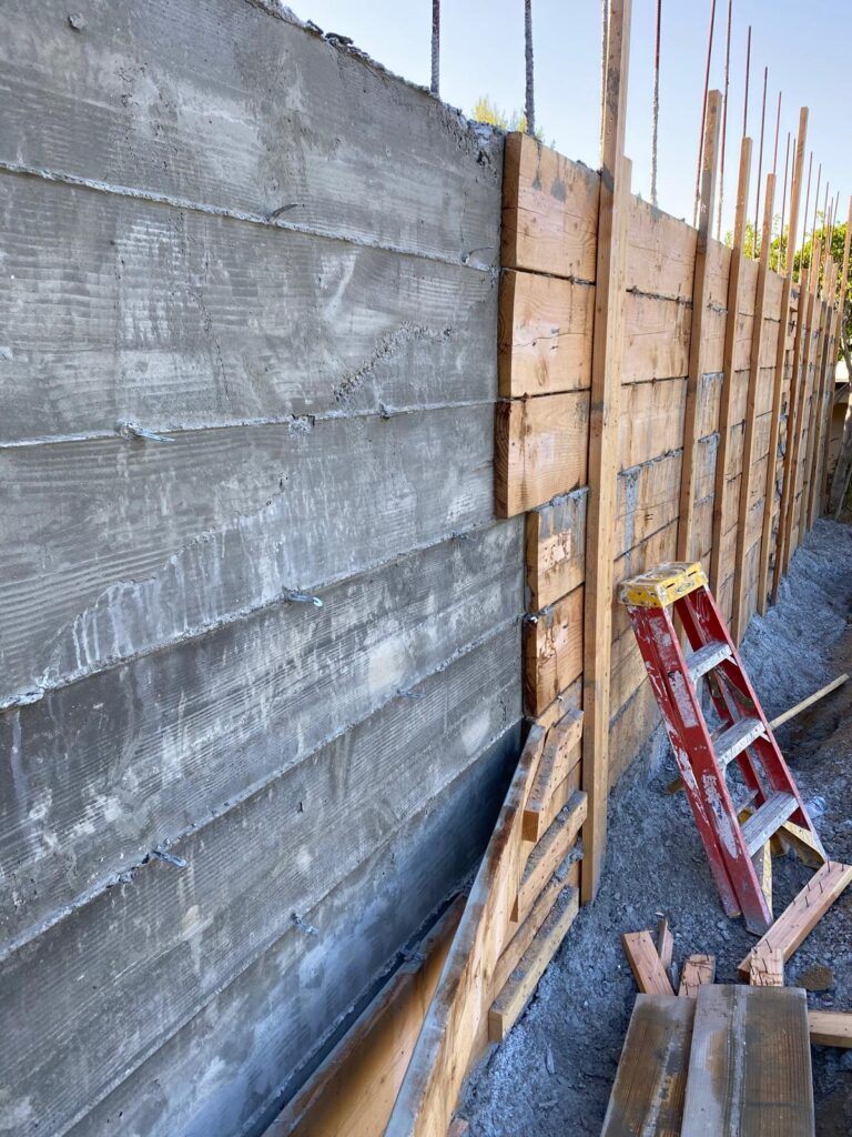 This retaining wall project by Golden Gate General Construction Inc. was a cornerstone of transforming a hillside property into a stunning and functional space. Located in Carla Ridge, Trousdale Estates, the 12-inch thick, 110-foot-long retaining wall was essential for creating the foundation for a future infinity zero-edge swimming pool and expanding the backyard space. Despite the challenges of working on a hillside and the complexity of the engineering, our team installed 24 caissons, each 32 inches in diameter and 28 feet deep into the bedrock, using 16-inch number 8 rebars for reinforcement. Due to hauling restrictions, we could only pour five yards of concrete at a time, requiring careful planning and execution. The result is a beautifully reinforced structure that sets the stage for luxury and elegance.